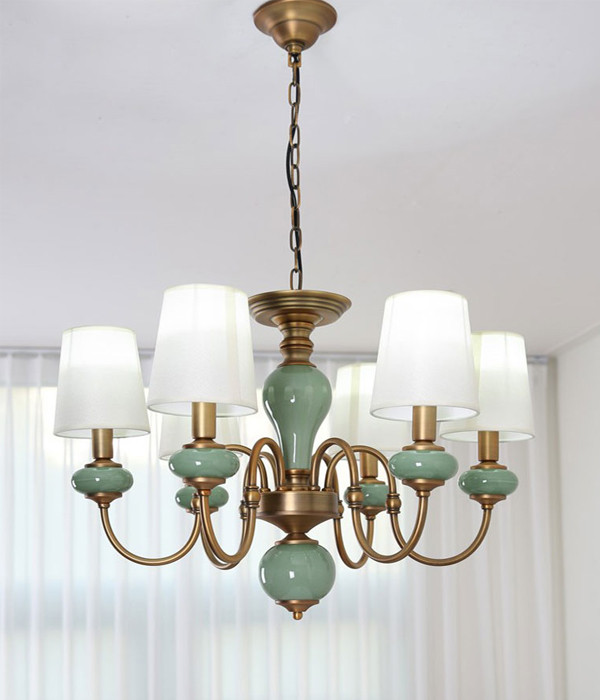 옥색 도자기의 부드러운 곡선이 돋보이는 고급진 샹들리에